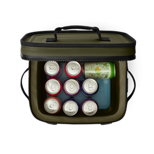 Meet the leakproof, tough-as-nails, carry-the-day soft cooler. Around here, we call it the Hopper Flip® 12. Its wide-mouth opening makes for easy loading and access to your food and drinks. Its compact, cubed body means ultimate portability — go off road, onto the water, and back again with this personal cooler. And its extreme insulation means your ice is staying ice.
