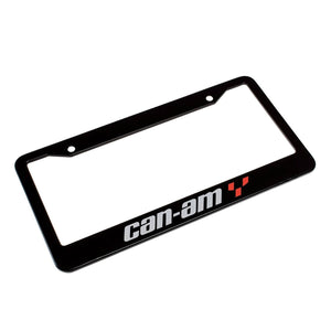 Can-Am On-Road License Plate Frame Rust-proof galvanized aluminum Four (4) holes for securing to car Screen printed logo Matte black finish Hardware included Fits all standard US and Canadian license plates Dimensions:31 cm x 16 cm